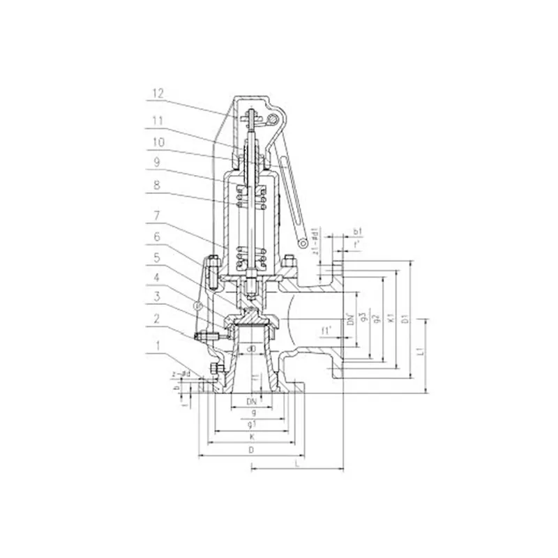 | Тип | DN | d0 | D | K | g | gl | b | f | f1 | Z-φd | DN' | D1 | k1 | g3 | g2 | b1 | f | f¹ | Z1-φd1 | L | L1 | ≈H |